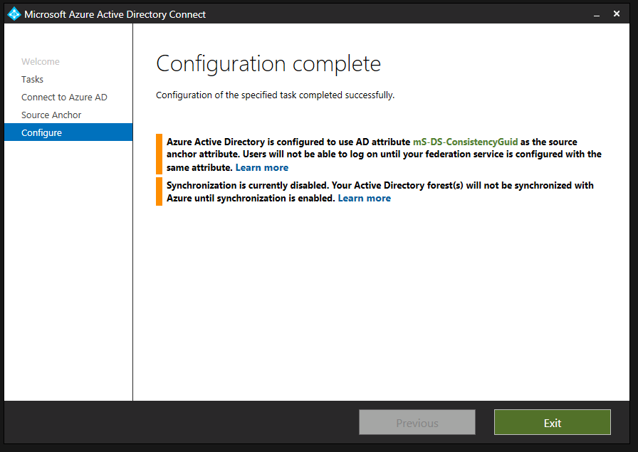 Once its done, the Source Anchor will be changed to mS-DS-ConsistencyGuid attribute