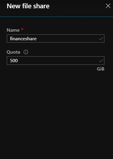 • Press Create and the File Share will be created in few seconds.