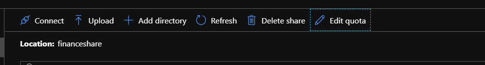 • Click on the File Share just created below options will be available