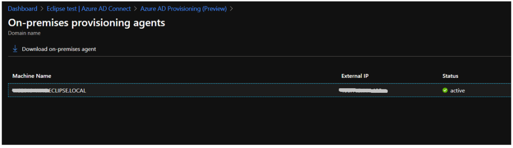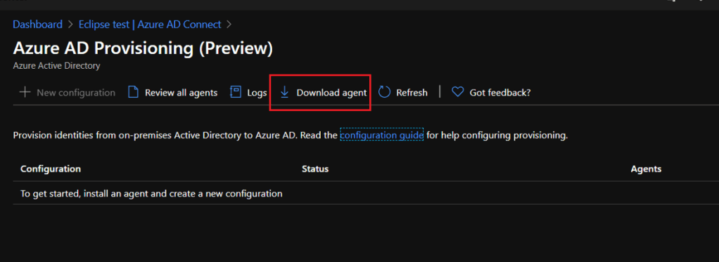 This will create the config profile for the installed agent for that on-premises AD domain. And finally the config needs to be enabled and it will start provisioning the objects. - Select New Config