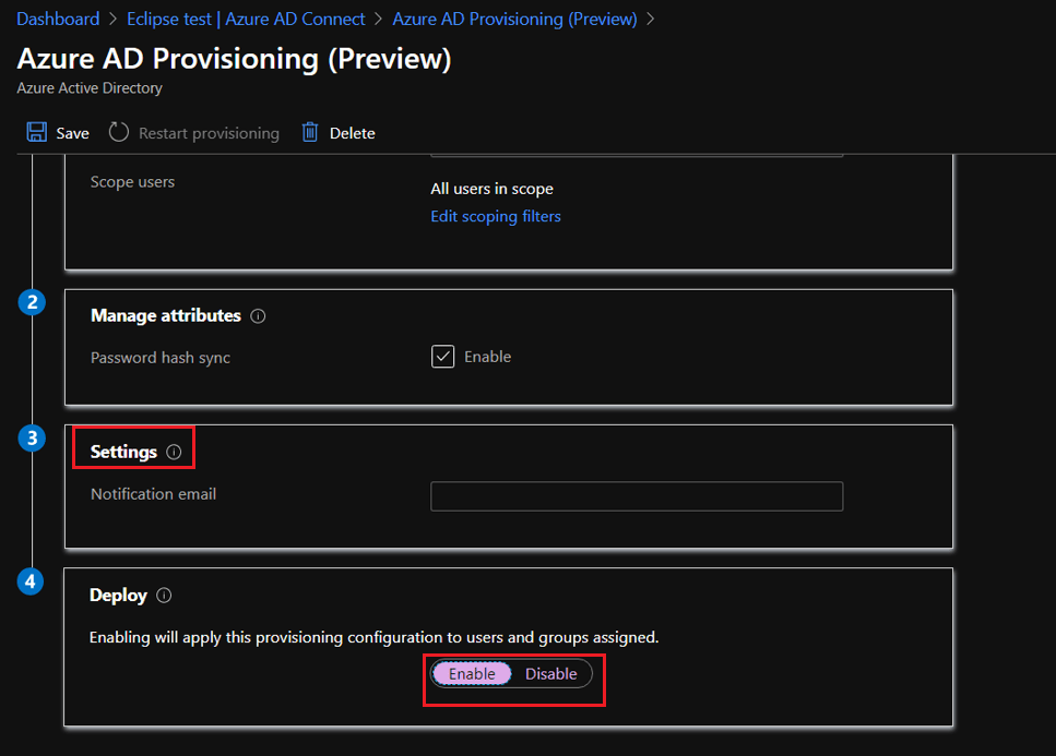 - Provide the notification email address to alert regarding sync errors under Settings.