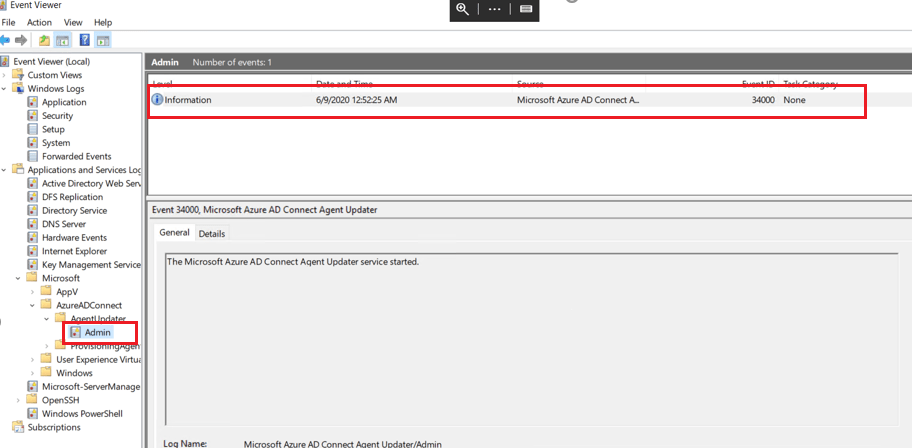 Event Viewer logs on that on-premises server to verify the agent is now running