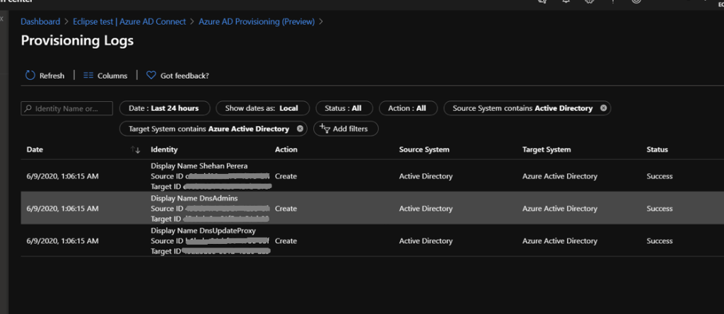 Provisioning logs from Azure AD Portal to check the status