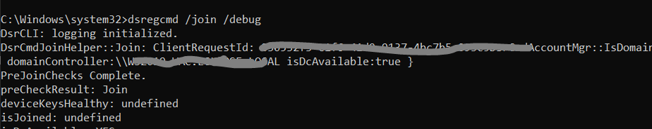 command to run dsregcmd /join /debug