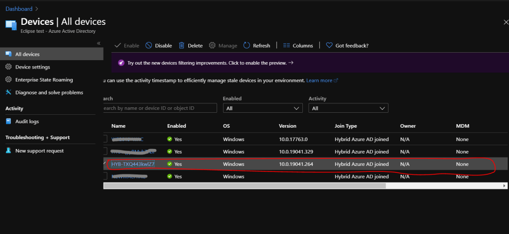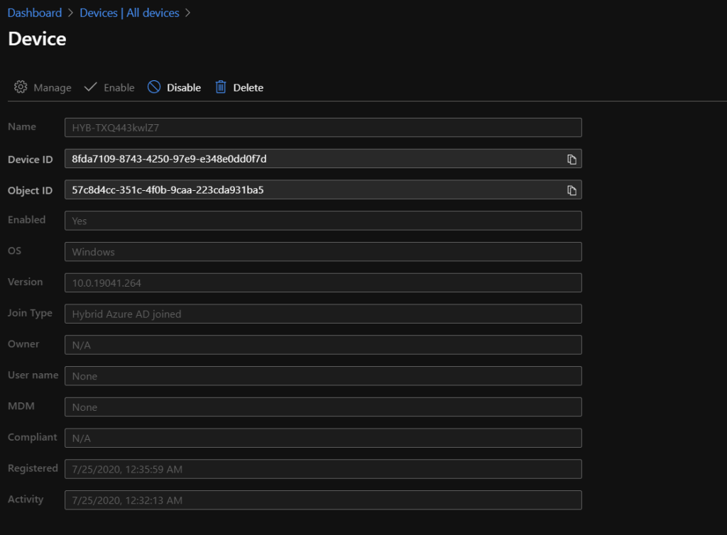 Finally, After the above step, make sure the same “Azure AD registered” user has logged in to the computer by using the UPN. The Devices in Azure AD portal, you’ll be able to see the device with the join type Hybrid Azure AD Joined