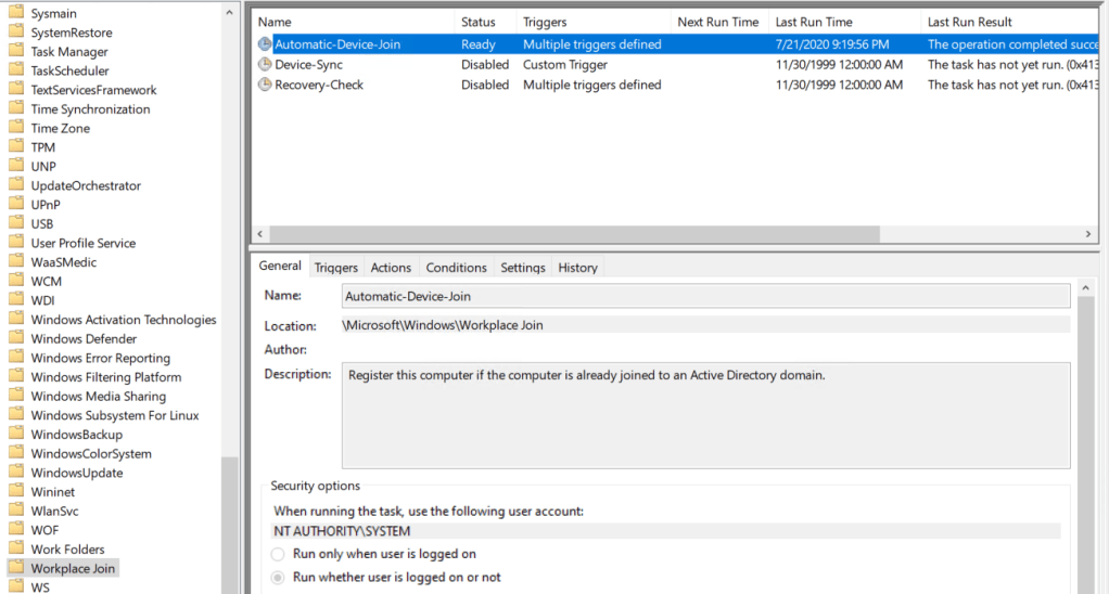 Or if you run the dsregcmd command to join the workstation manually, it will kick off the schedule.