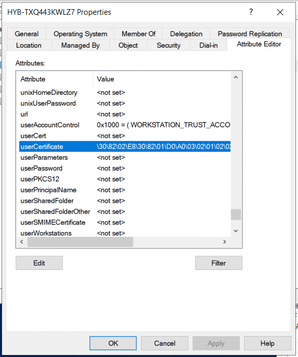 userCertificate in the Computer Object in the AD