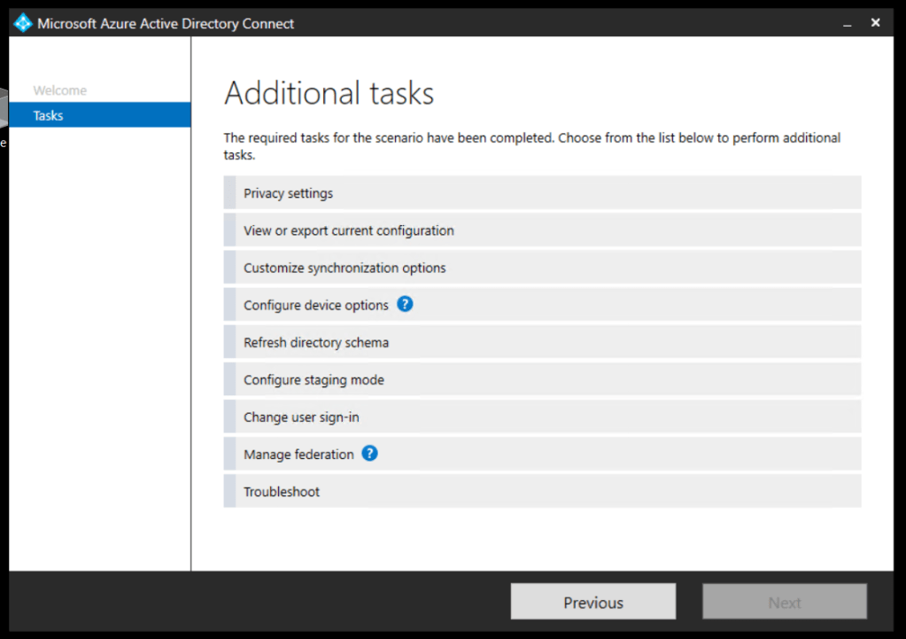AAD Connect will finish successfully. You can Exit the tool now.