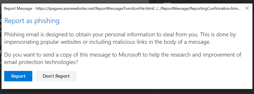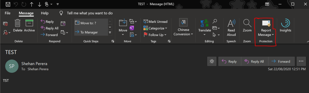 And apart from notifying relevant IT staff, user can now report the suspicious email as Junk or Phishing so Microsoft will be notified the information will be kept for any similar event.