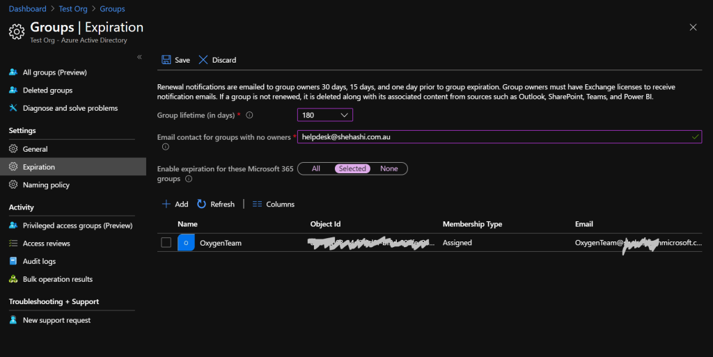 Azure AD portal > Azure Active Directory > Groups > Expiration