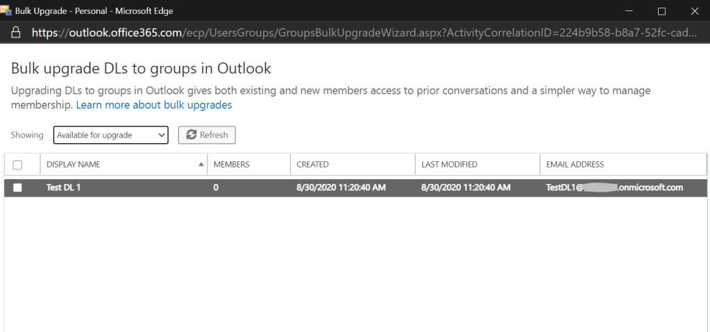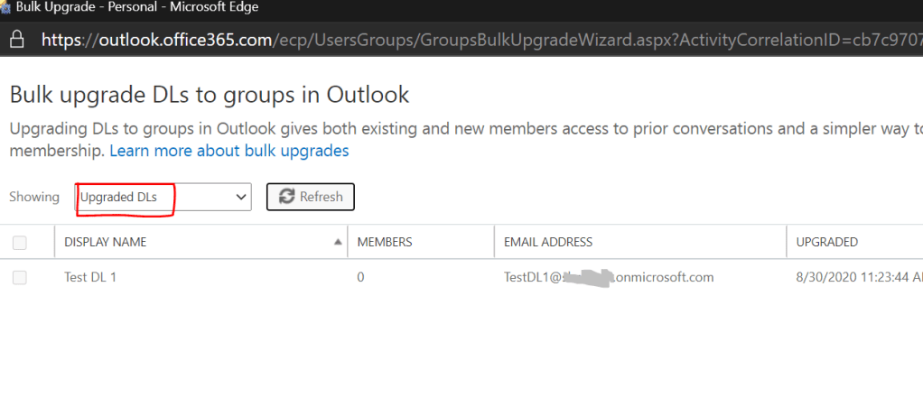 Upgrade-DistributionGroup -DlIdentities <DL address>