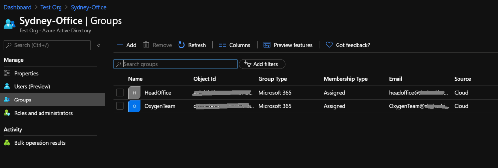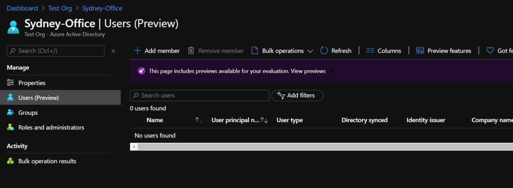 New-AzureADMSAdministrativeUnit -Description “Sydney office users” -DisplayName “Sydney-Office”