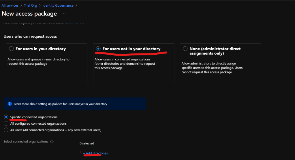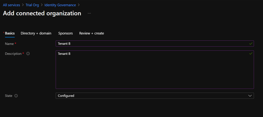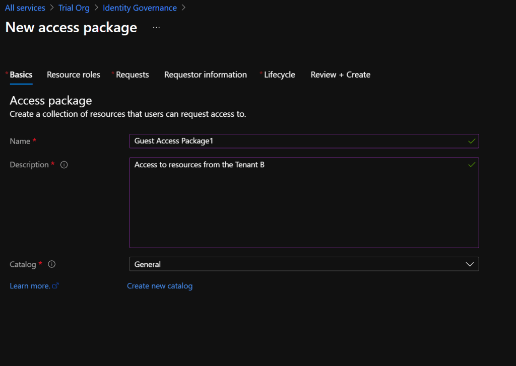 Ideally this answers the relationship between Tenant A and Tenant B. This is the connection you need to setup in order an external party to access the resources under the Entitlement Management policies