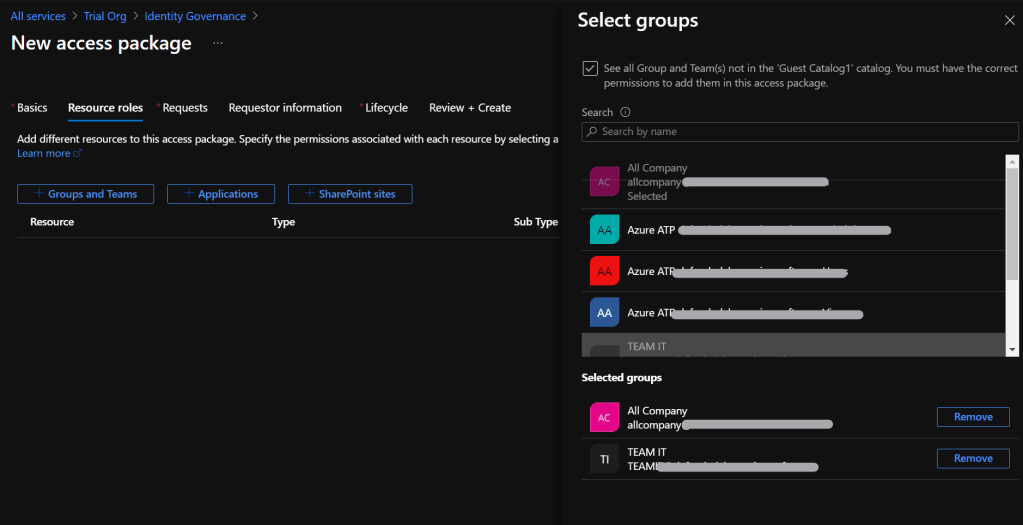 The Catalog will contain the access package that required by the end user (internal or external). It can be SharePoint Sites, Teams or Apps.