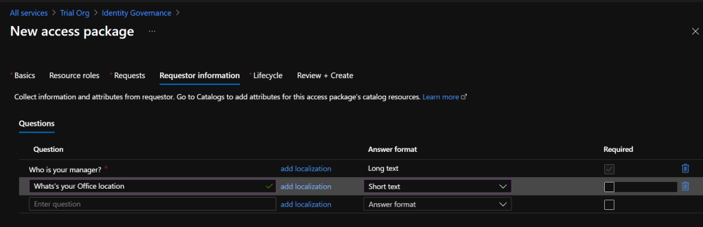 Go to https://aad.portal.azure.com> Azure Active Directory > Identity Governance > Entitlement Management
