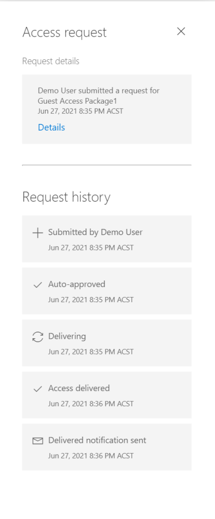 The access package is now completed and as as you can see, the Guest user’s access has been fulfilled.