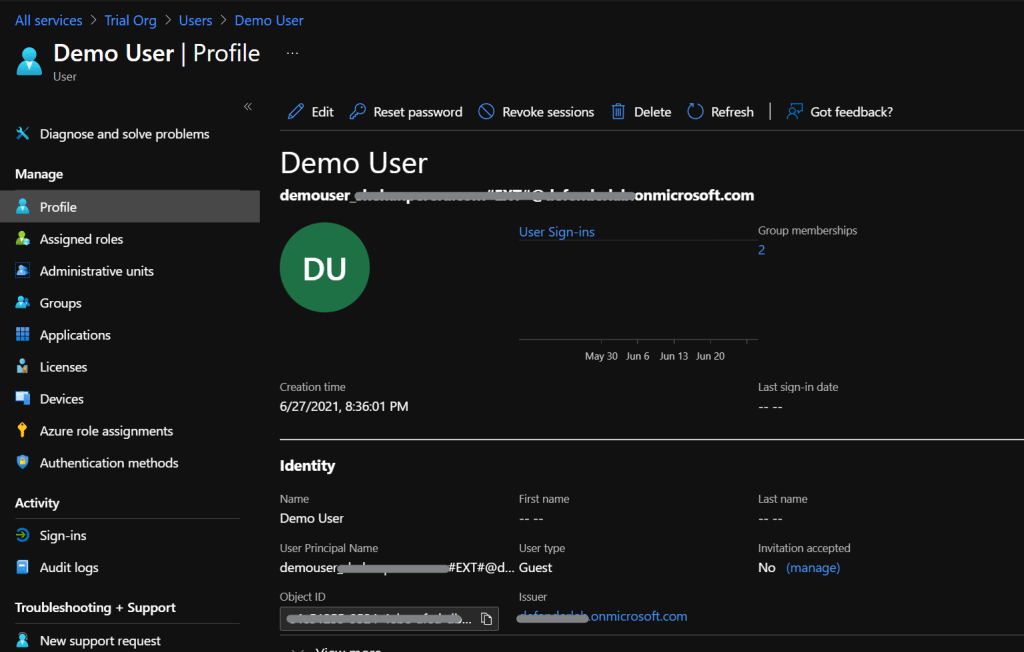 Notice the Demo User from Tenant B will be created in the Tenant A’s Azure AD and the Invitation Accepted is still NO
