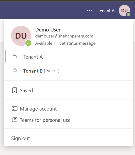 Look at their Teams! The user’s Teams is already set to go for Tenant B