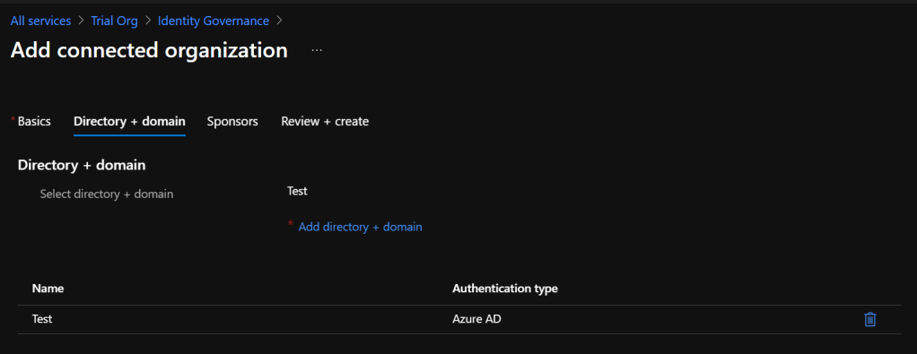 Go to https://aad.portal.azure.com/ > Azure Active Directory > Identity Governance > Entitlement Management > Connected Organizations > Add Connected Organization