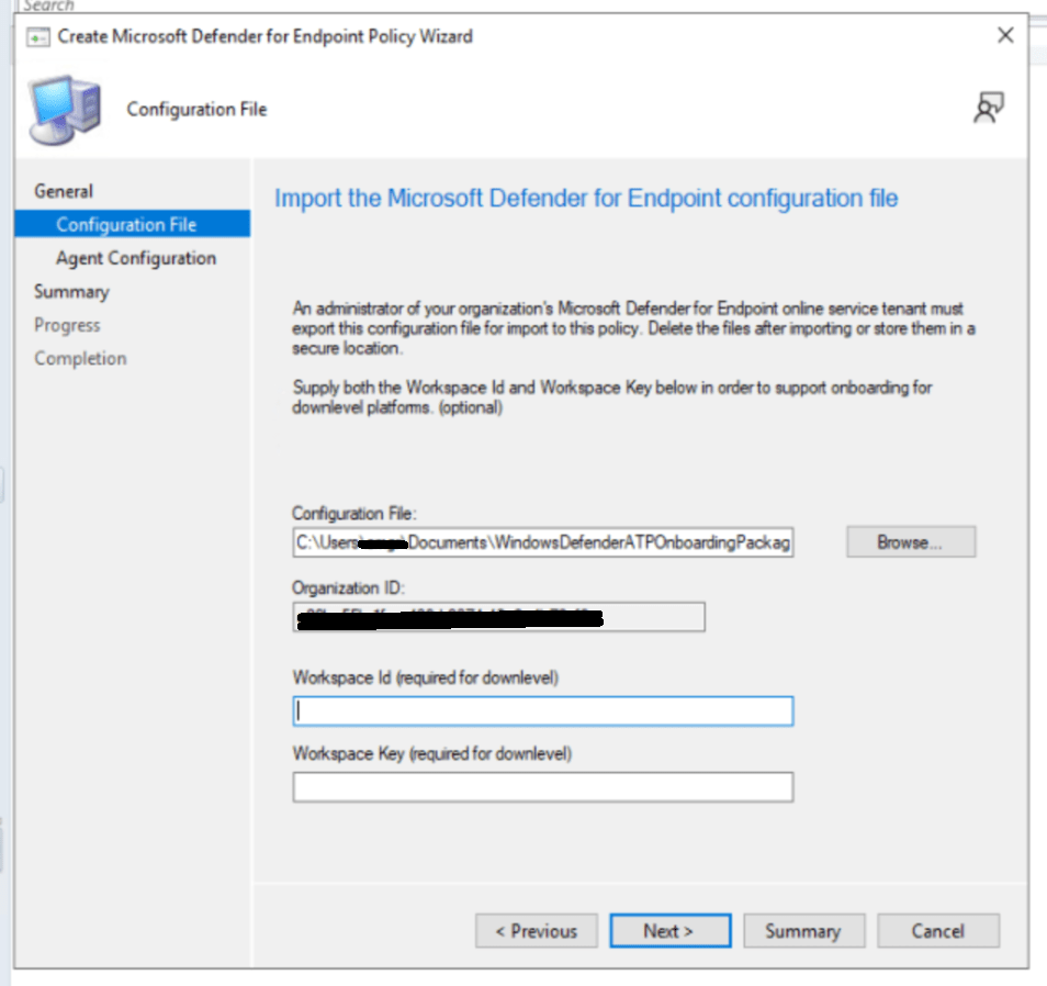 Browse and Upload the previously downloaded onboarding package from MDE