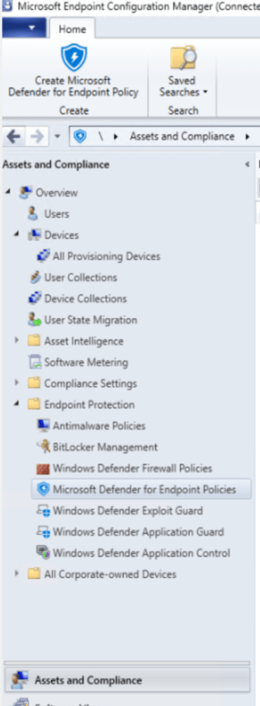 Go to Assets and Compliance > Endpoint Protection > Microsoft Defender for Endpoint Policies