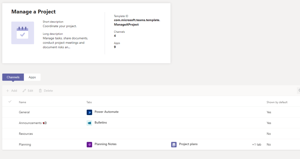 When you open the preffered Template, note down the Templete ID eg: com.microsoft.teams.template.ManageAProject