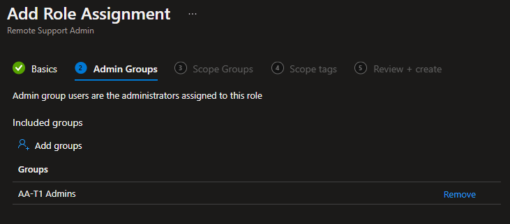 • Set the Scope Groups – These are users/ devices that the relevant RBAC admin can access > Press Next
