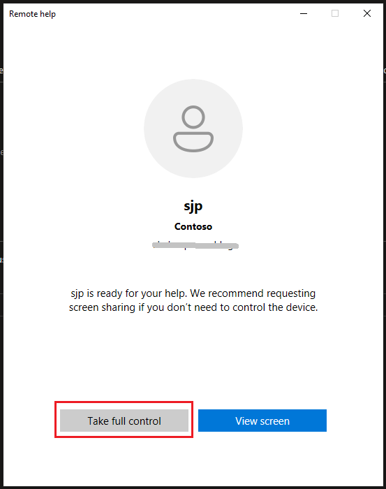 While the IT admin can see below. At this stage, Admin can Take full control or just View screen