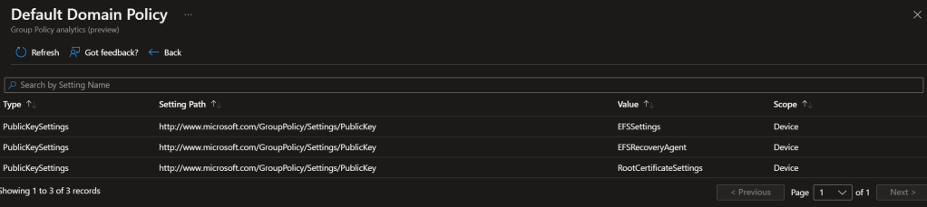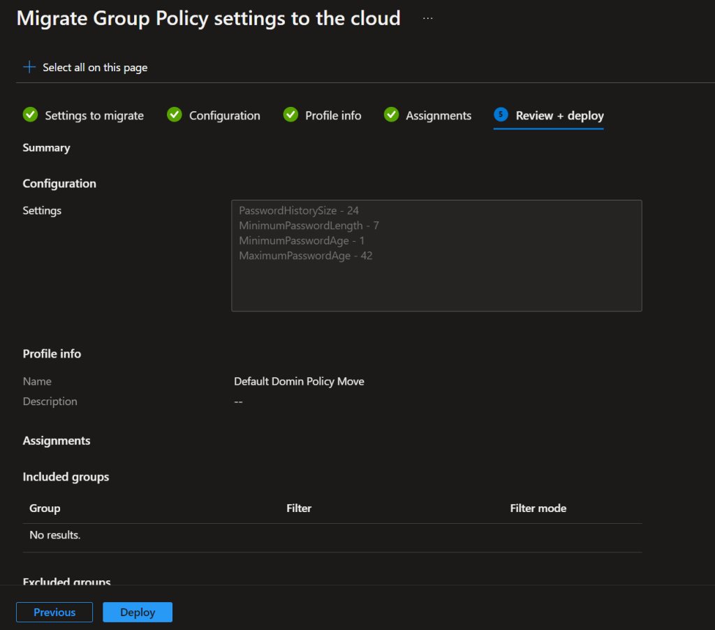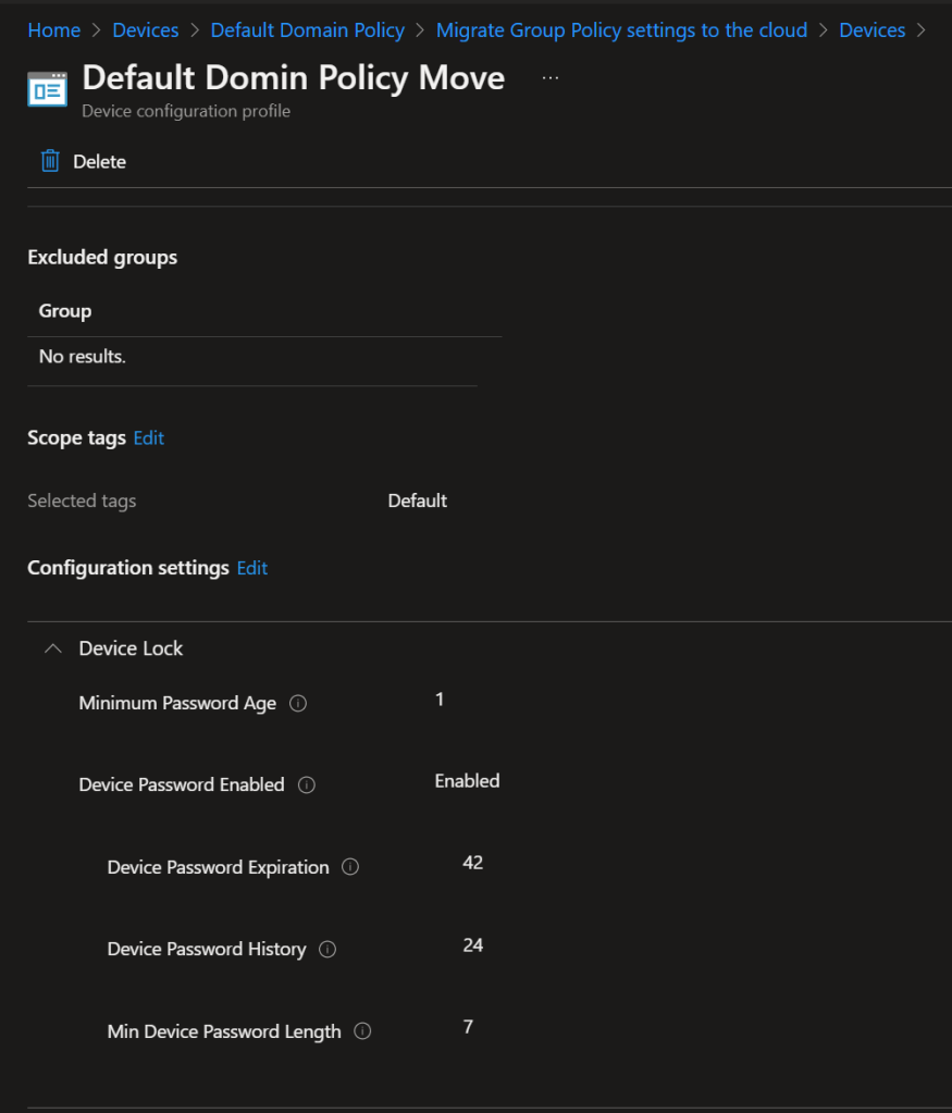 As you can see below, the Default Domain Policy which I uploaded has 15 policies and out of 15, 5 policies can be moved to MEM.