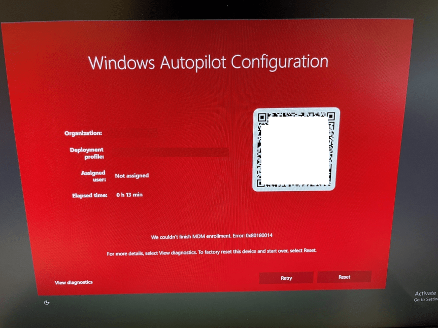 It was one of days where you get these sort of errors just after completing a task. That big ol’ unsatisfying red screen with an error. This time it was We couldn’t finish MDM enrollment. Error 0x80180014