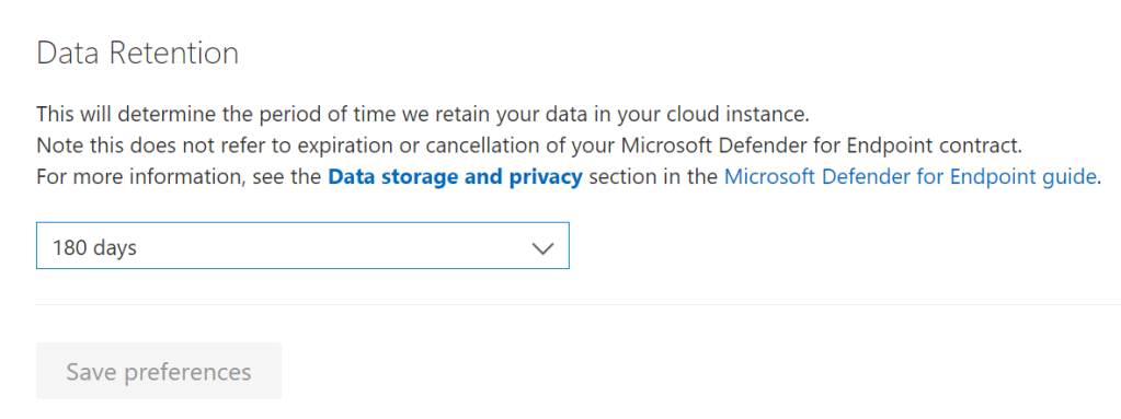 This is another important fact for all things Defender. Max data retention time period is 180 days.
