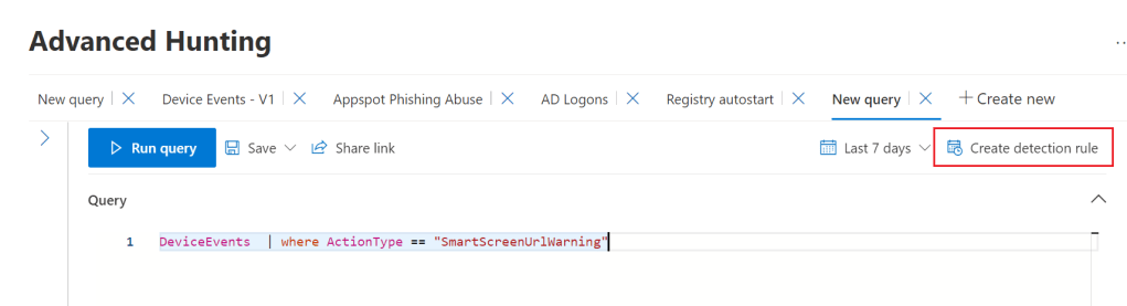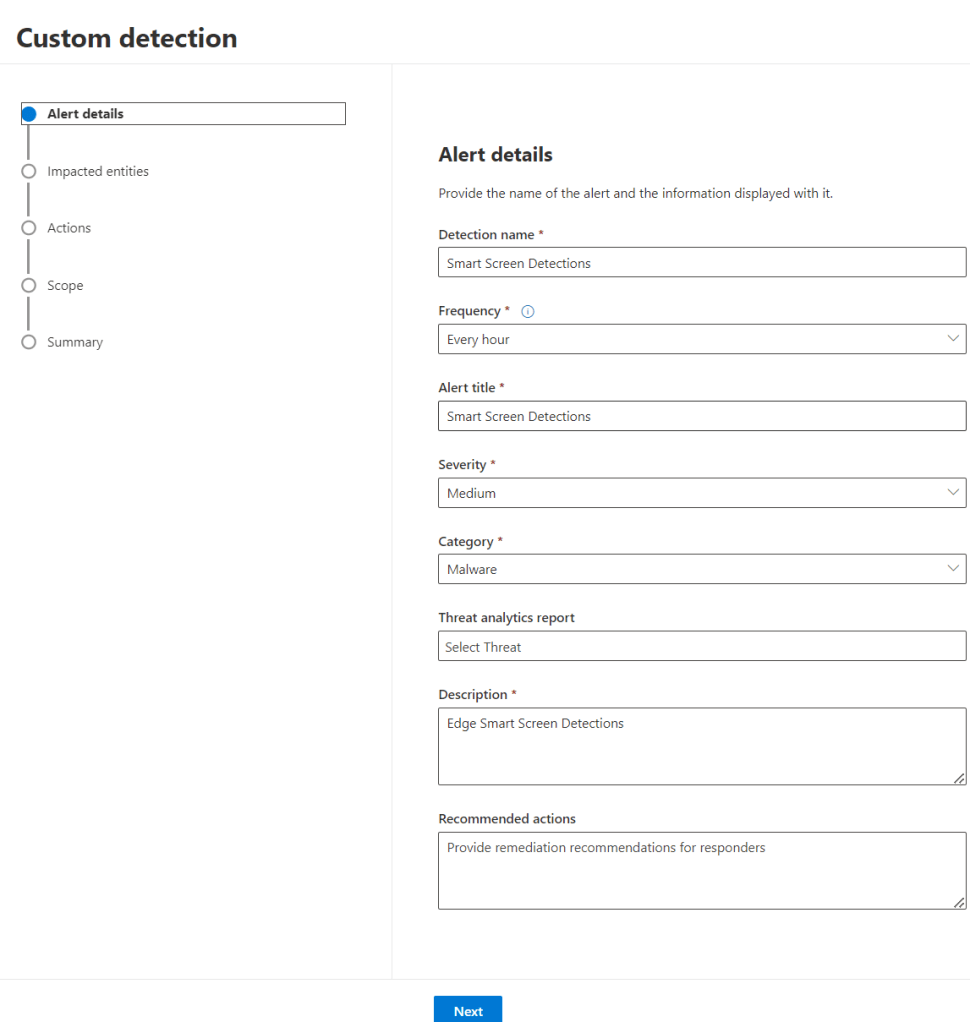 Below example shows how to create a Detection Rule to detect Edge Smart Screen URL Warning.