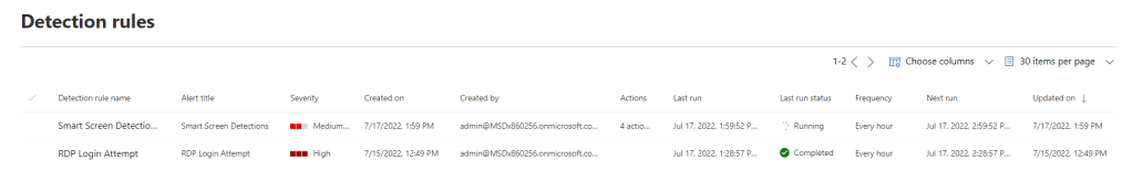 Now if you go to the Custom Detection rules under Hunting, you will see your created rules
