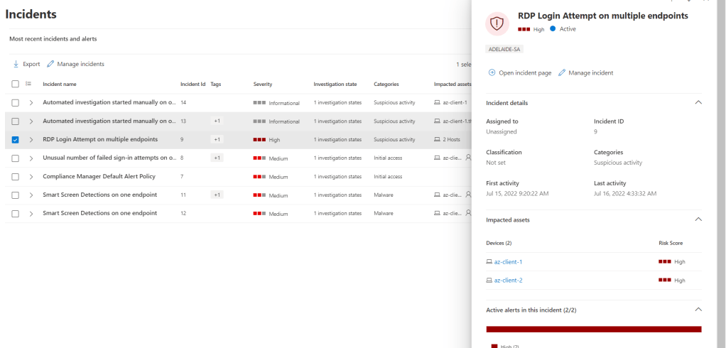 Go to Incidents & Alerts from the left pane and select Alerts. If there are any alerts related to the rules we created earlier, they will show up here.