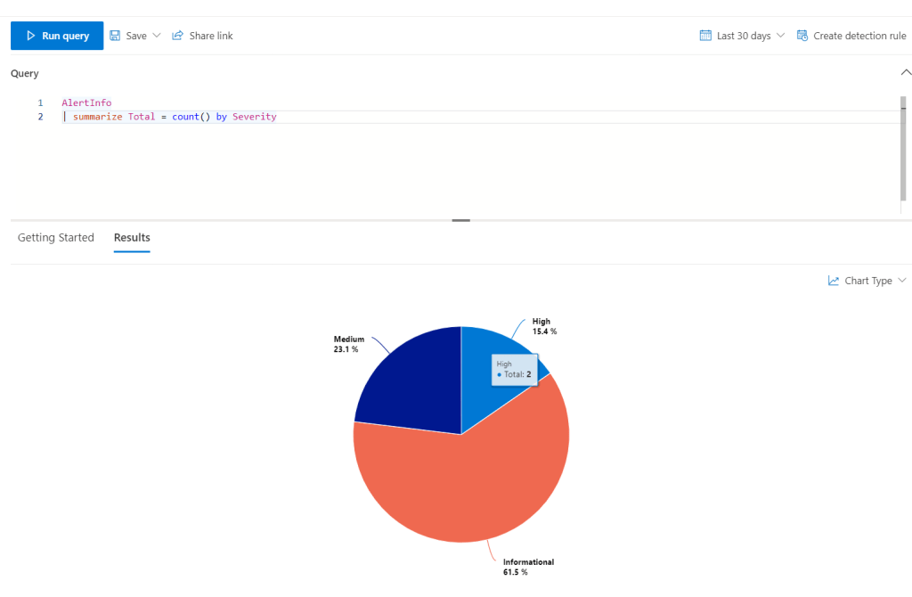 I’ve done a very simple query to identify the alerts by the Severity and rendering it to a Pie Chart.