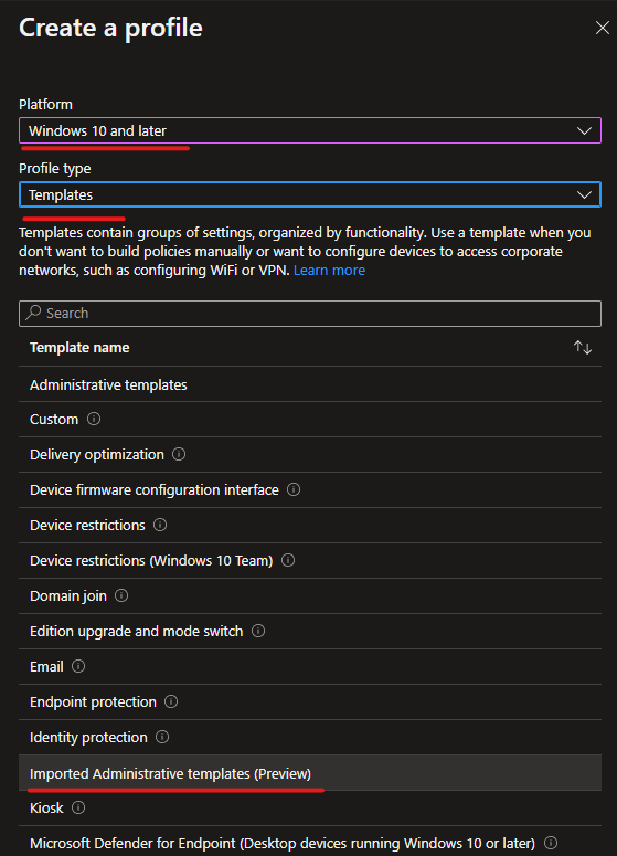 Go to Endpoint Manager > Devices > Configuration Profiles > Import ADMX