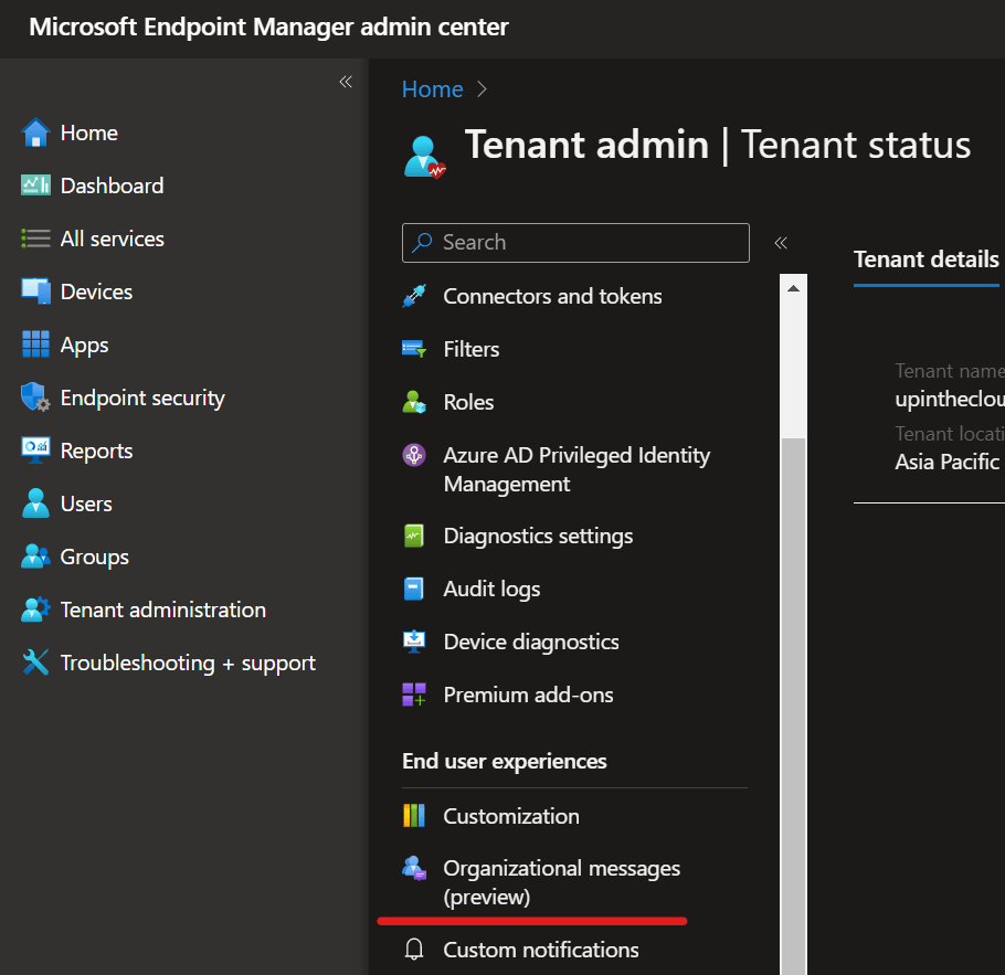 There were a lot of new updates for Microsoft Intune at the Ignite 2022. Organizational Messages are one of them. This feature is still in preview and believe more options will be available in the coming months.