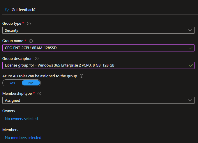 Having groups created and ready to go can be handy as you are finalising the deployment strategy. The reason is you may have users that require different CPC sizes given the activities they perform. A good combination can be adding the proper licensing attached to the group along with the proper group name.