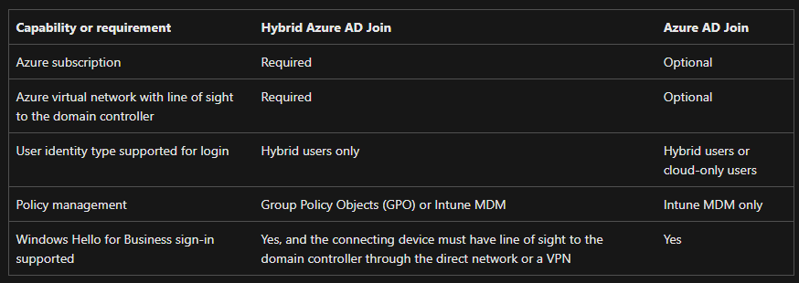 As we briefly touch base in the previous section, Azure AD provides authentication for Azure AD Joined (AADJ) CPCs and Local AD provides authentication for Hybrid Azure AD Joined (HAADJ) CPCs.