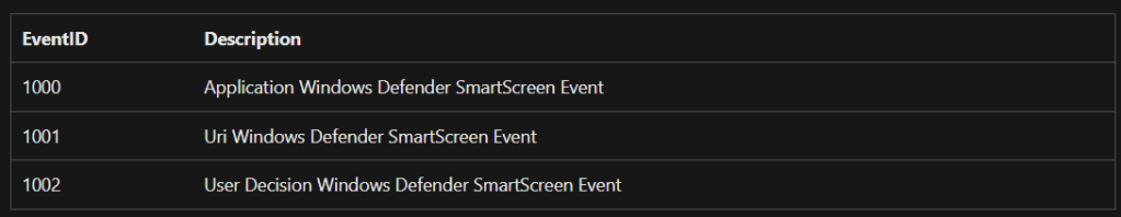Event Logs location: Microsoft-Windows-SmartScreen/Debug