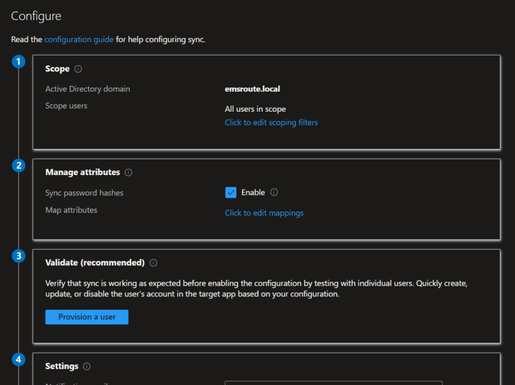 - An OU or group that is in scope of sync and can be used the pilot. We recommend starting with a small set of objects.