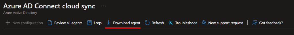 Go to Entra Portal > Azure AD > Hybrid Management > Azure AD Connect > Manage Azure AD cloud sync > Download Agent