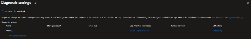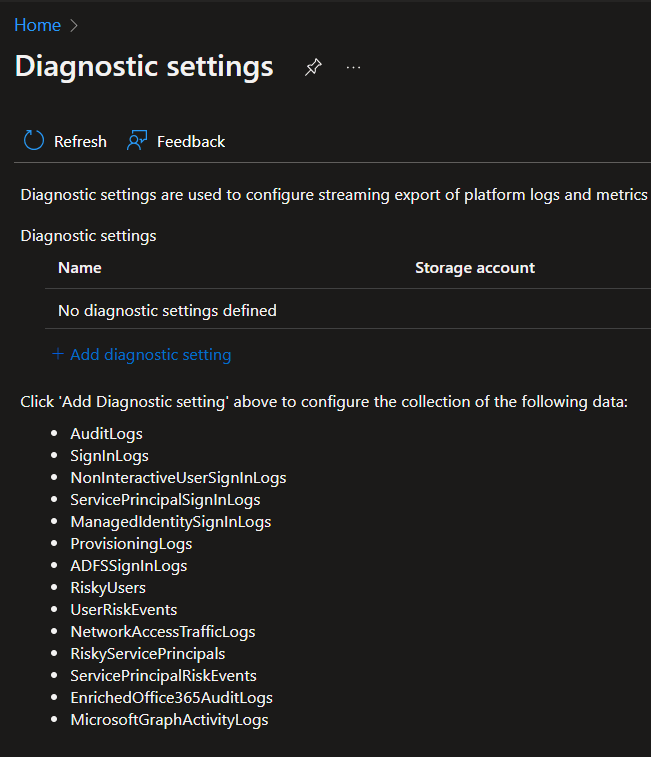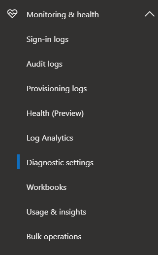 Go to Entra Portal on entra.microsoft.com > Azure Active Directory > Monitoring & Health > Diagnostic settings