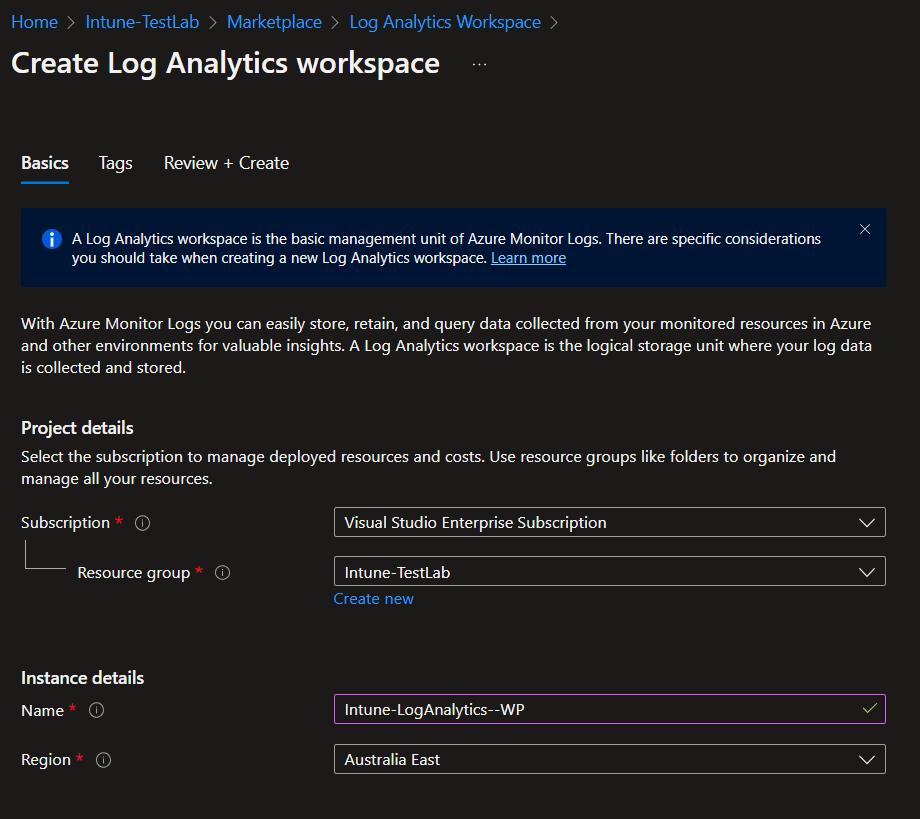 Go to Azure Portal on portal.azure.com and search for Log Analytics Workspace in a Resource Group