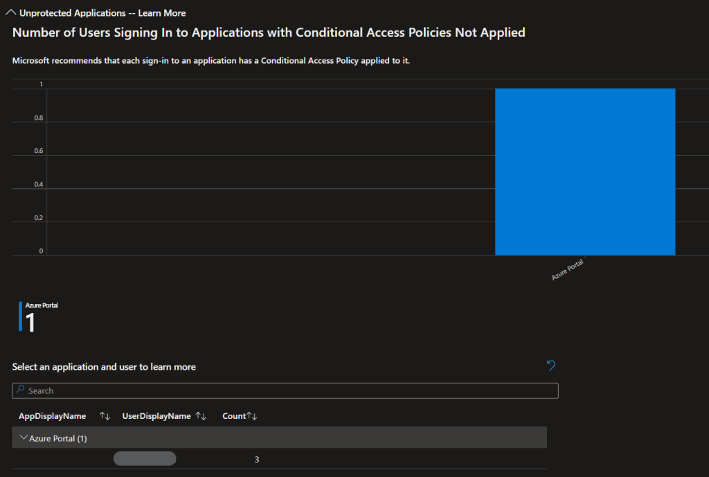 Unprotected Applications – Number of Users Signing In to Applications with Conditional Access Policies Not Applied