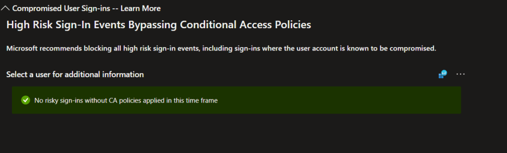 Compromised User Sign-ins – Microsoft recommends blocking all high risk sign-in events, including sign-ins where the user account is known to be compromised