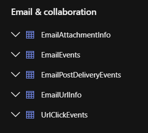 Below are the Email Related Tables available for KQL queries
