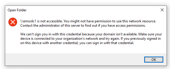 Once everything is set up, my user is now trying to access the file share by login to the computer using the PIN instead of the Windows password and he is now able to access the file share.