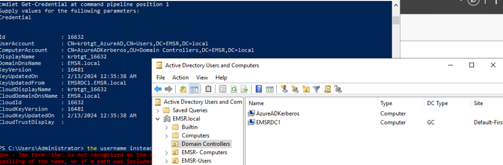 Set-AzureADKerberosServer -Domain $domain -CloudCredential $cloudCred -DomainCredential $domainCred -RotateServerKey