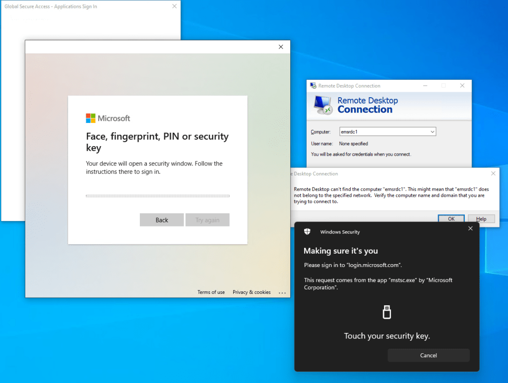 User will have to sign in and the 2nd Conditional Access Policy will come into play. As we configured FIDO2 Passkey for this too, it will go through the below process before allowing access.